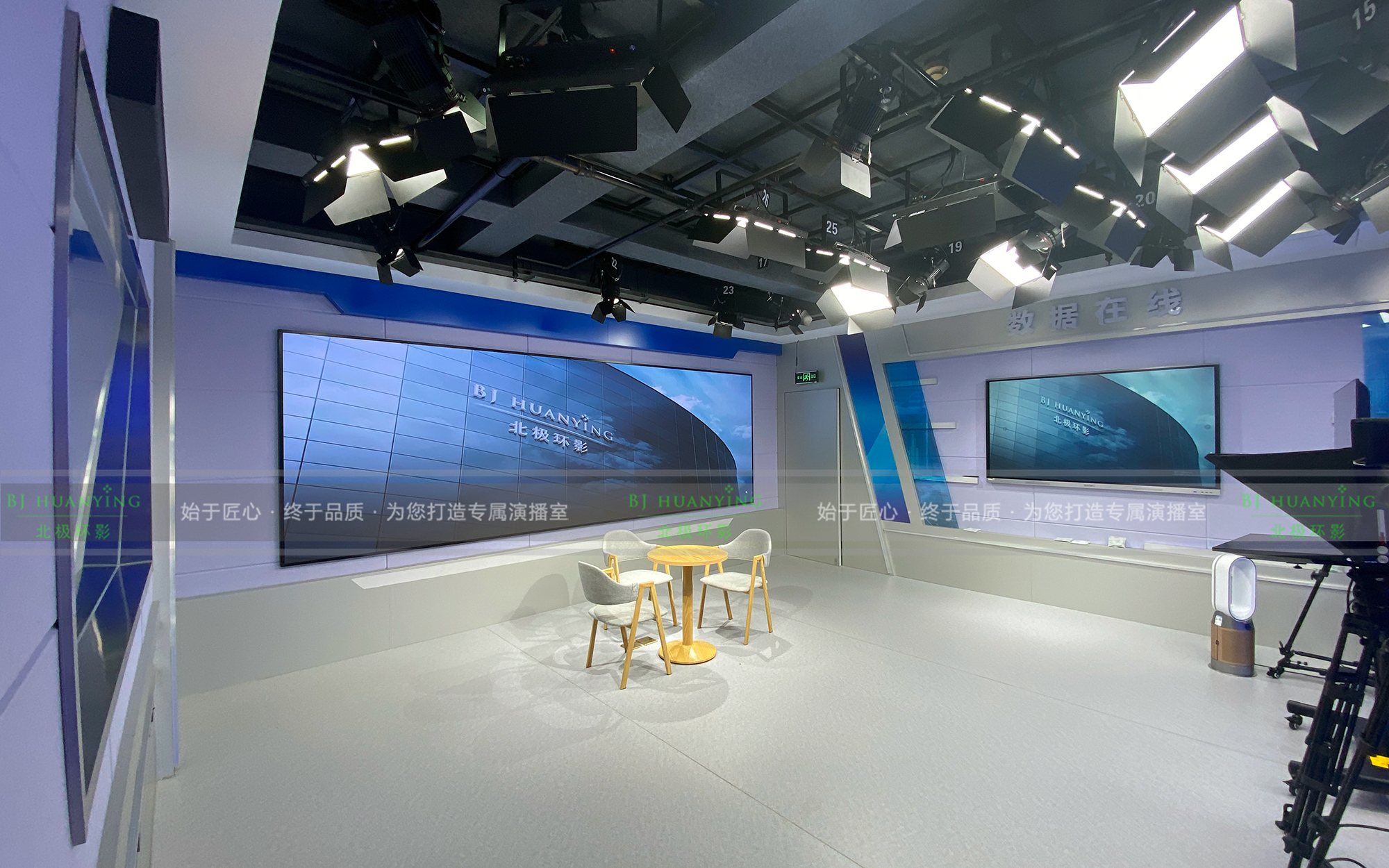 整个演播室功能全面,划分为播报区,座谈区,站播区,虚拟区,导播区几大区域,为用户提供了无限的创作和创意空间,满足客户多场景应用需求。该项目占地面积约140平米,施工周期2个月。