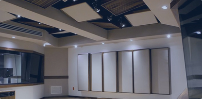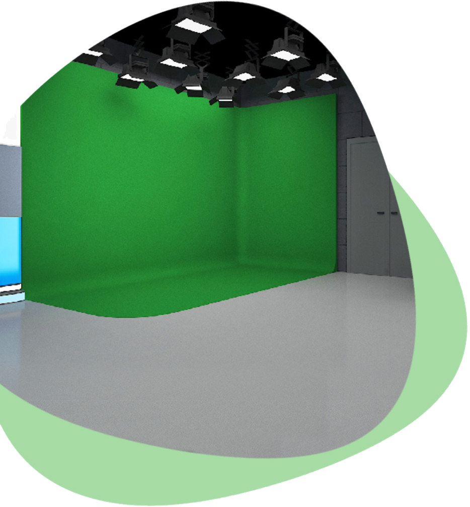 根据要求不知场景环境,部署演播桌椅、高清摄像机、桌面话筒、蓝箱/绿箱,专业灯光搭建、提词器等设备。